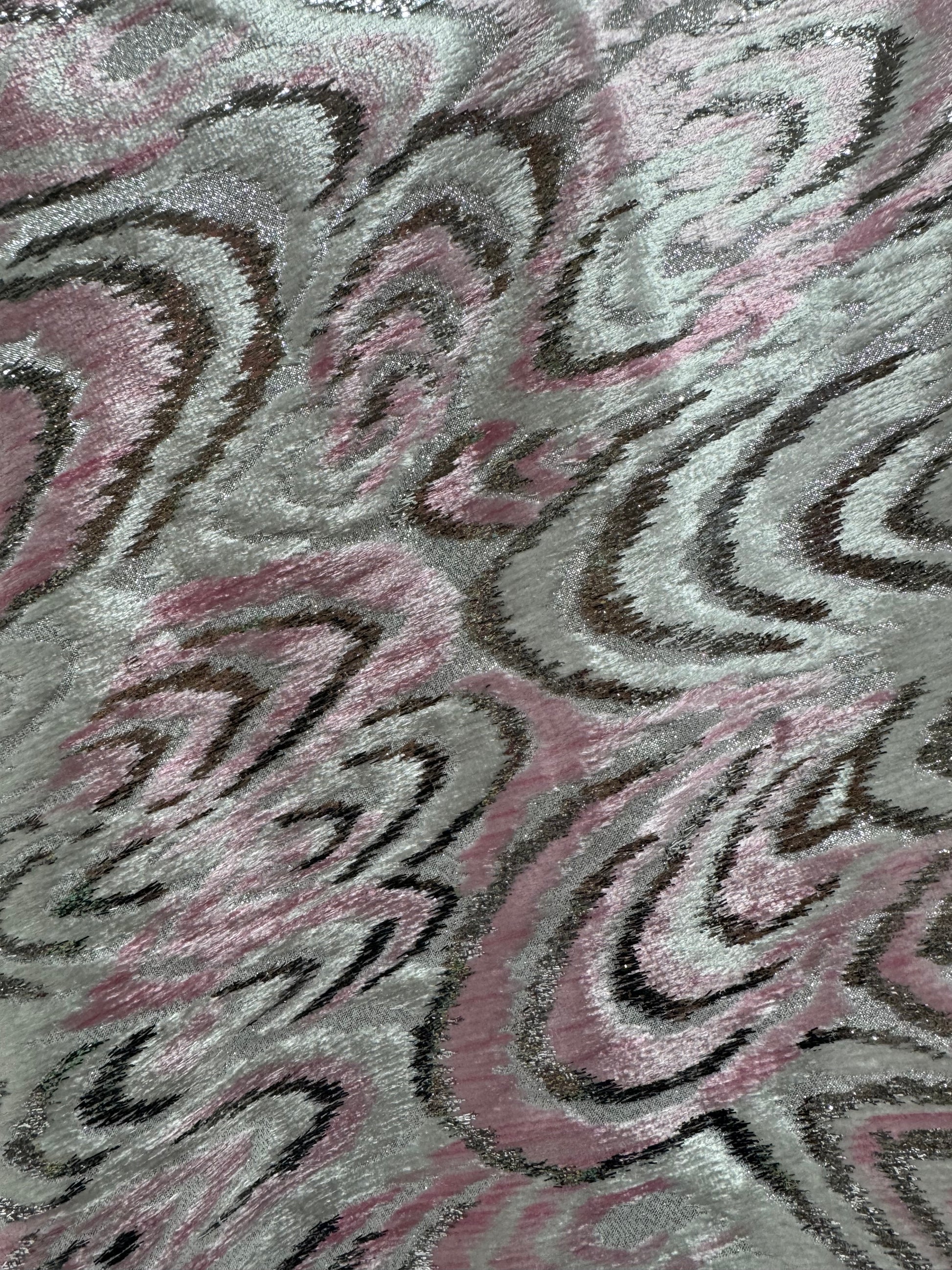 Metallic Velvet Swirl Fabric – Soft Pink & Silver (Sold Per Metre)