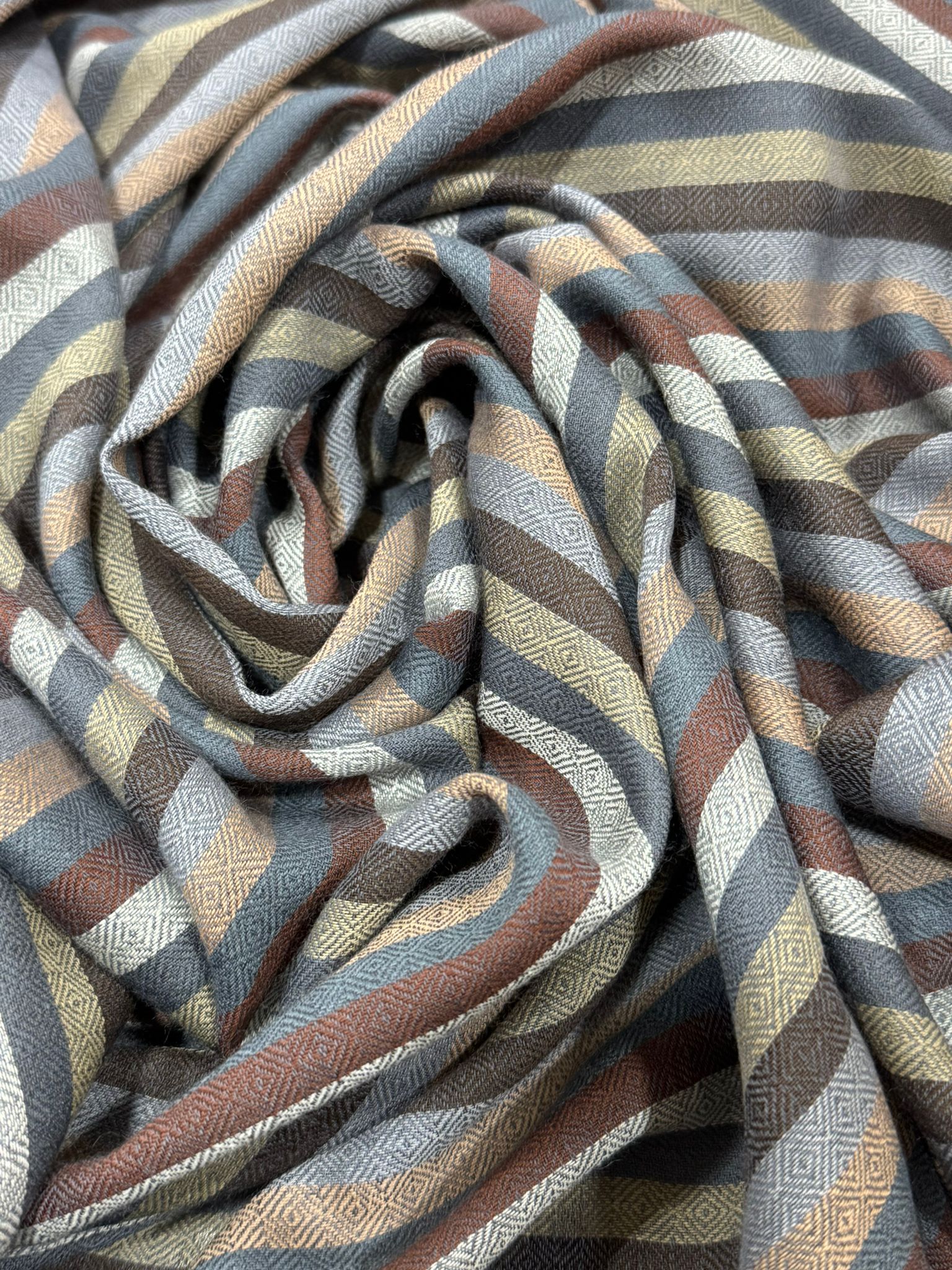 Striped Wool-Blend Shawl in Earth & Steel Tones